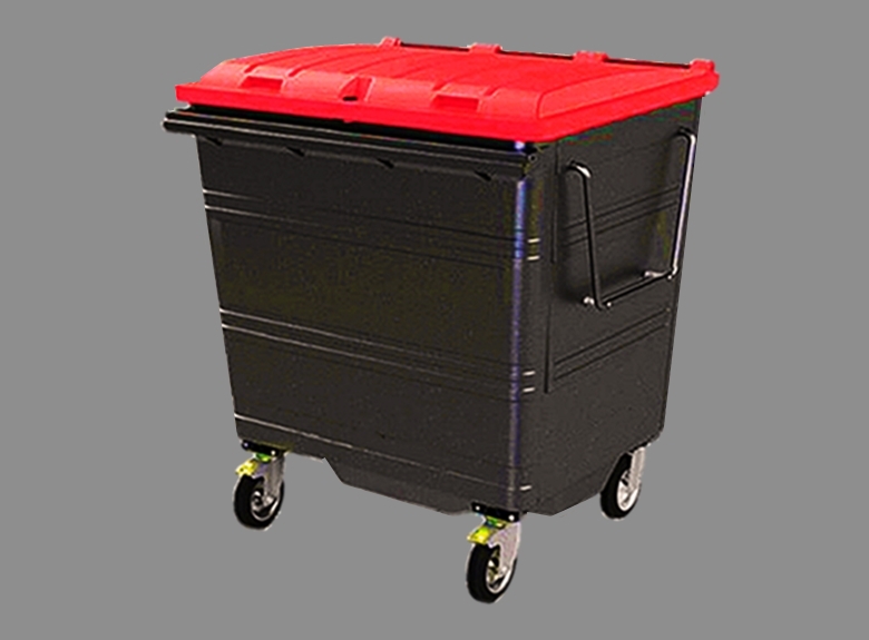 5 Lid Types & apertures, Duraflex Black Trade Lid, High Dome 2 Aperture Bottle Recycling Lid, High dome Recycling Flap Lid: Lid Within Lid, Foot Operated Lid, Drain plug varieties Standard Lid Drain Plug, (Rodent Replant Drain Pug) Powder coated body colour options (See Colour Chart), Standard vinyl graphics, Custom embossing External fork pockets X4 200mm or Heavy Duty High Speed 200mm Heavy Duty Directional towing castors, Towing Eye Towing Hitch, Bespoke vinyl graphics, Hinged Drop Front Panel Suitable For Materials Storage. Hinged Drop Back Panel Suitable For General Waste.