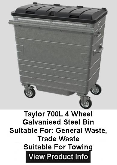 The Taylor Range General Waste Bins are the industry-leading standard for waste and recycling containers regardless of the market sector. The Taylor range is available in an unrivalled number of sizes from 500 to 1280 litres.