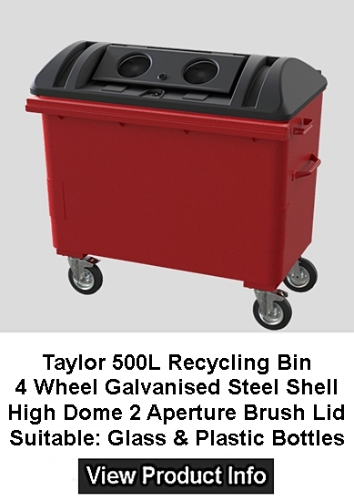 The Taylor Continental 500-litre 4-wheel Bin is the smallest bin in the Continental range. The 500-litre bin is ideal for both indoor and outdoor use, with the ability to fit through standard doorways.- Available with 3 lid options, the Taylor 500-litre 4-wheel Bin is the smallest bin in the Continental range. The 500-litre bin is ideal for both indoor and outdoor use, with the ability to fit through standard doorways.- available with 3 lid options
