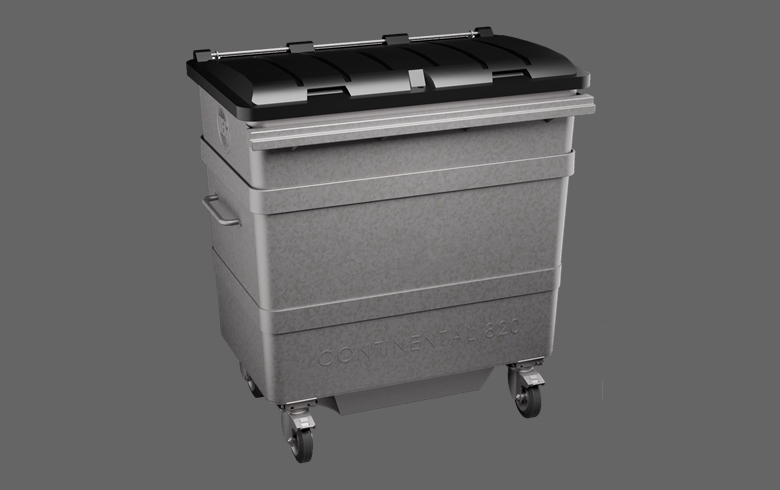 820 Litre trade waste steel body, Hot-Dipped Galvanised Steel, along with internally welded seams, ensures robust protection in the harshest of environments and protects the container from internal corrosion due to residual waste being caught in exposed corners.